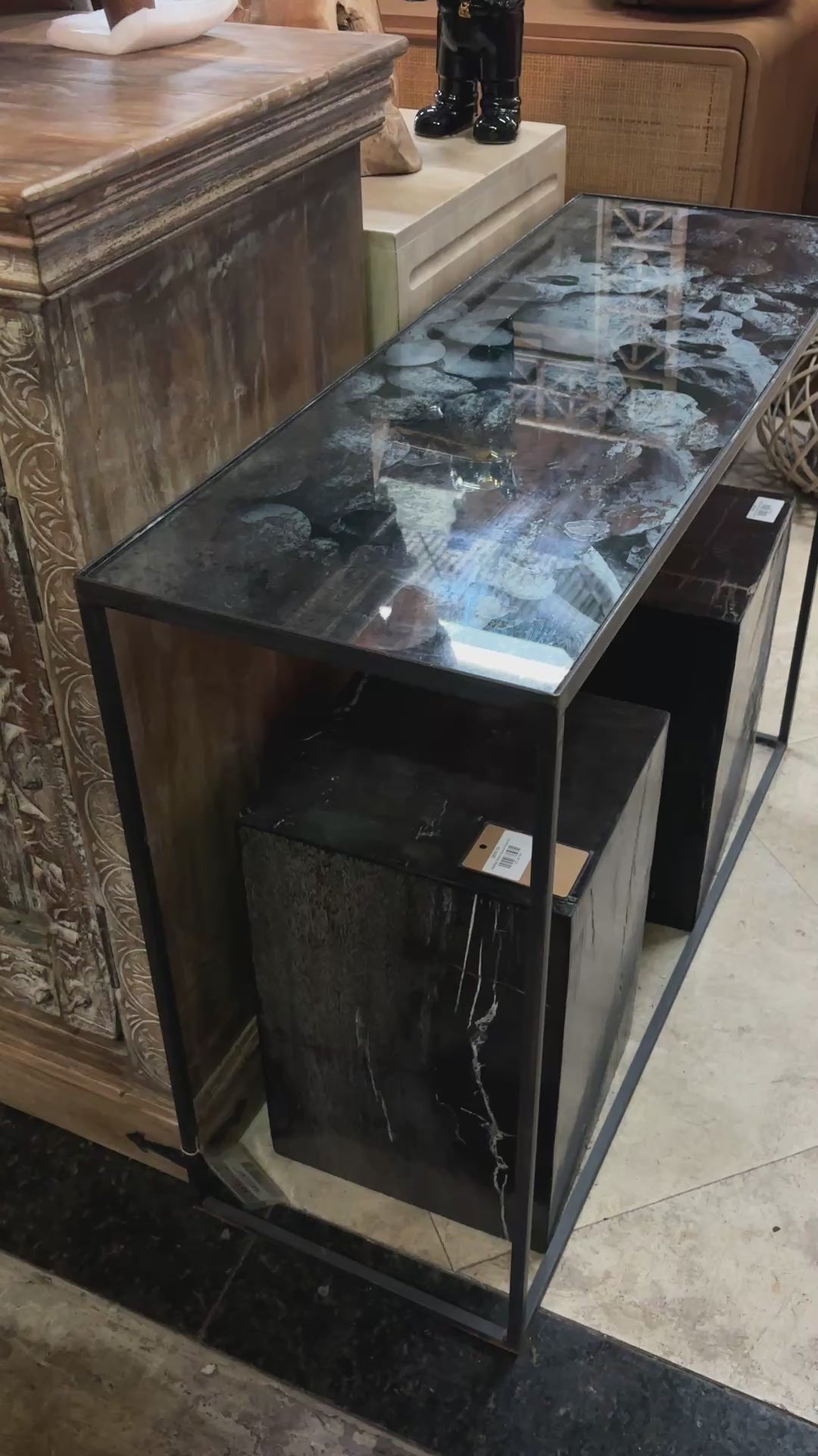 The Tables collection includes everything from live edge coffee tables and teak root consoles to dining tables, bar tables, and side tables. Each is hand-selected for its natural beauty and structural integrity.