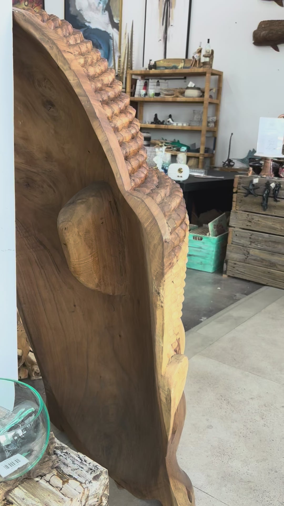 Wood Buddha Face Statue 60”